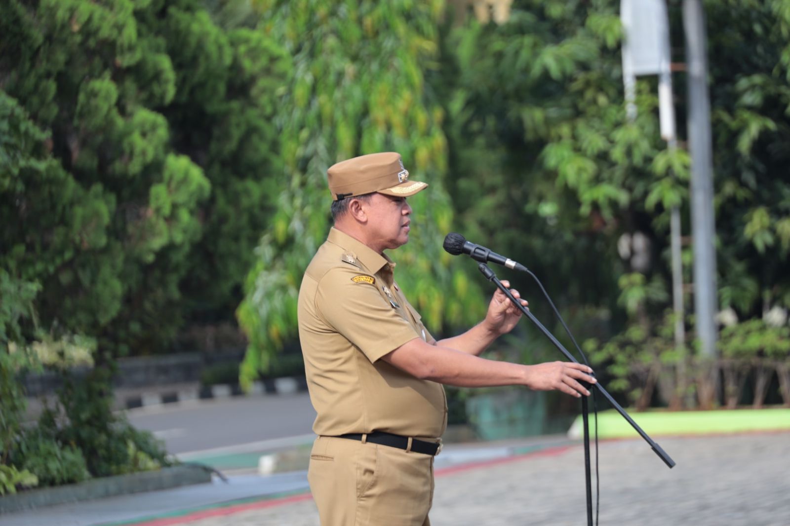 Wali Kota Bekasi, Tri Adhianto, memimpin apel pagi yang digelar di Lapangan Plaza Pemerintah Kota Bekasi, Senin (3/11). Apel rutin tersebut dihadiri oleh jajaran pejabat Pemerintah Kota Bekasi, ASN, serta perwakilan dari berbagai perangkat daerah.