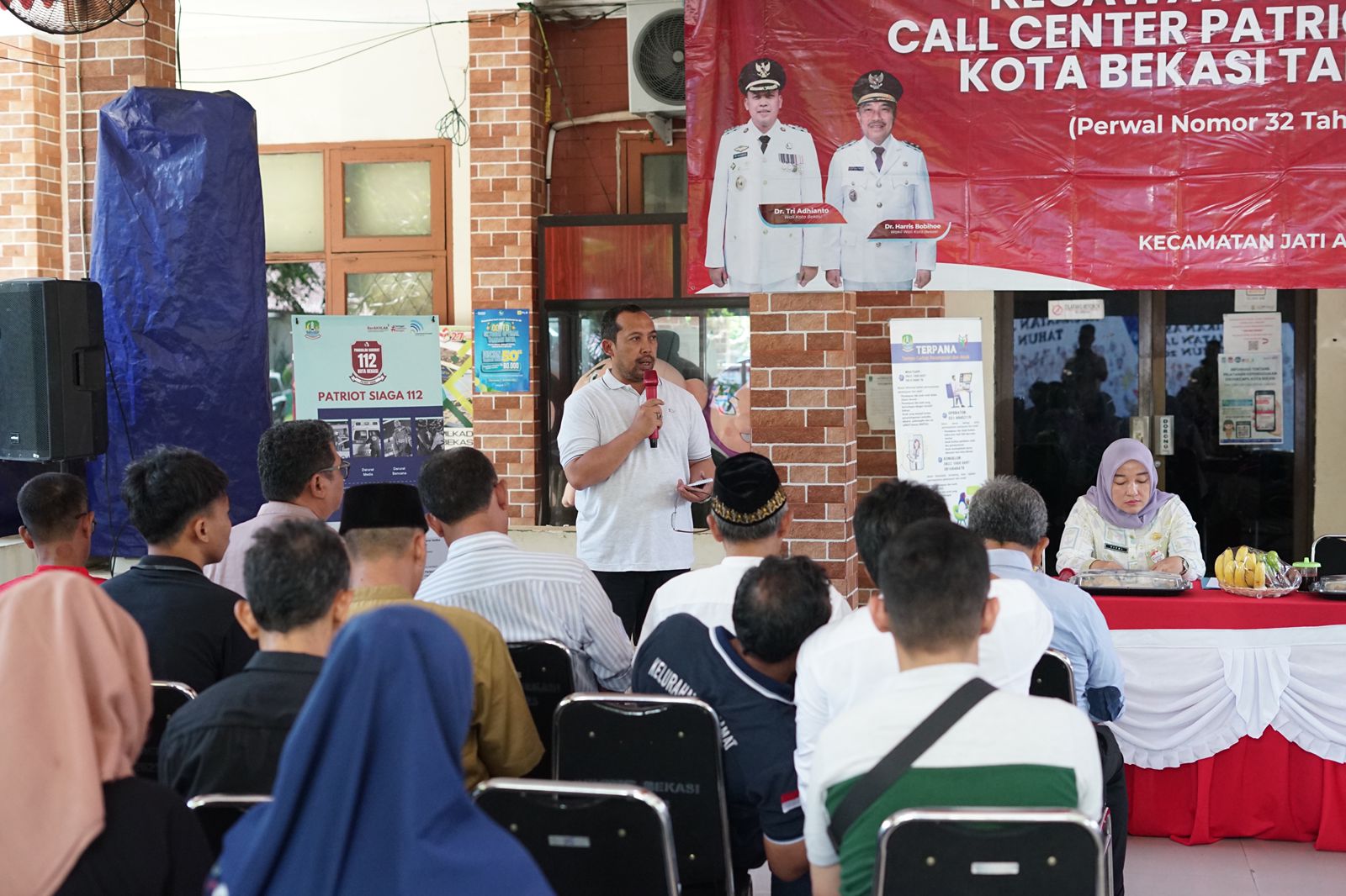 Pemerintah Kota Bekasi melalui Dinas Komunikasi, Informatika, Statistik, dan Persandian (Diskominfostandi) terus melakukan sosialisasi layanan kegawatdaruratan Call Center Patriot Siaga 112 kepada masyarakat. Kali ini kegiatan dilaksanakan di Kecamatan Jatiasih, Jumat (24/10/2025), dengan melibatkan unsur aparatur kecamatan, kelurahan, serta masyarakat setempat.