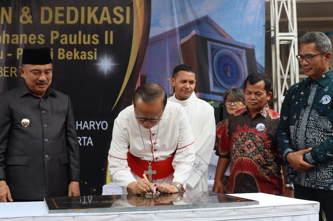 Wakil Wali Kota Bekasi Abdul Harris Bobihoe hadiri acara pemberkatan Gereja Katolik Santo Yohanes Paulus II, Rawalumbu, Kota Bekasi.