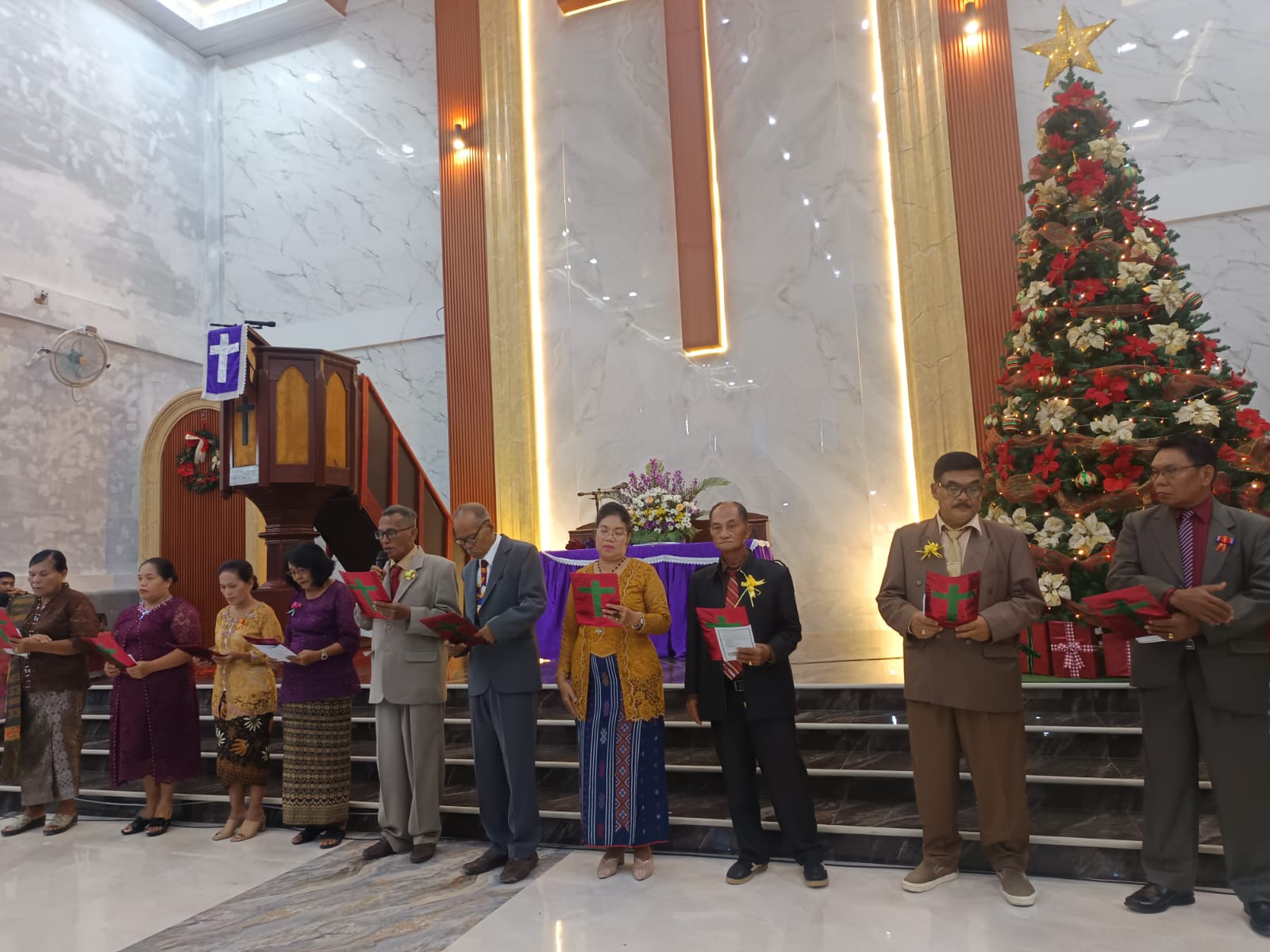 Ibadah Natal dipimpin oleh Pdt. F. J. Nainggolan, STh, yang menyampaikan renungan Natal yang sangat menggugah dan mengesankan. Dalam khotbahnya, beliau menekankan makna “Ecclesia Domestica”, yaitu bahwa sesungguhnya gereja yang paling utama adalah keluarga. Keluarga merupakan tempat pertama untuk belajar Firman Tuhan, menumbuhkan iman, serta mempraktikkan kasih dan persahabatan yang sejati.