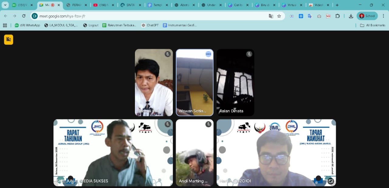 Pimpinan Jurnal Media Groof menggelar Rapat Wartawan Seluruh Indonesia secara daring melalui Zoom Meeting pada Selasa, 30 Desember 2025. Rapat dimulai pukul 08.25 WIB dan dipusatkan dari Kantor Pusat Jurnal Media yang beralamat di Jl. Peraji, Kampung Dukuh RT 001 RW 004 No. 45, Desa Ciledug, Kecamatan Setu, Kabupaten Bekasi, Provinsi Jawa Barat.