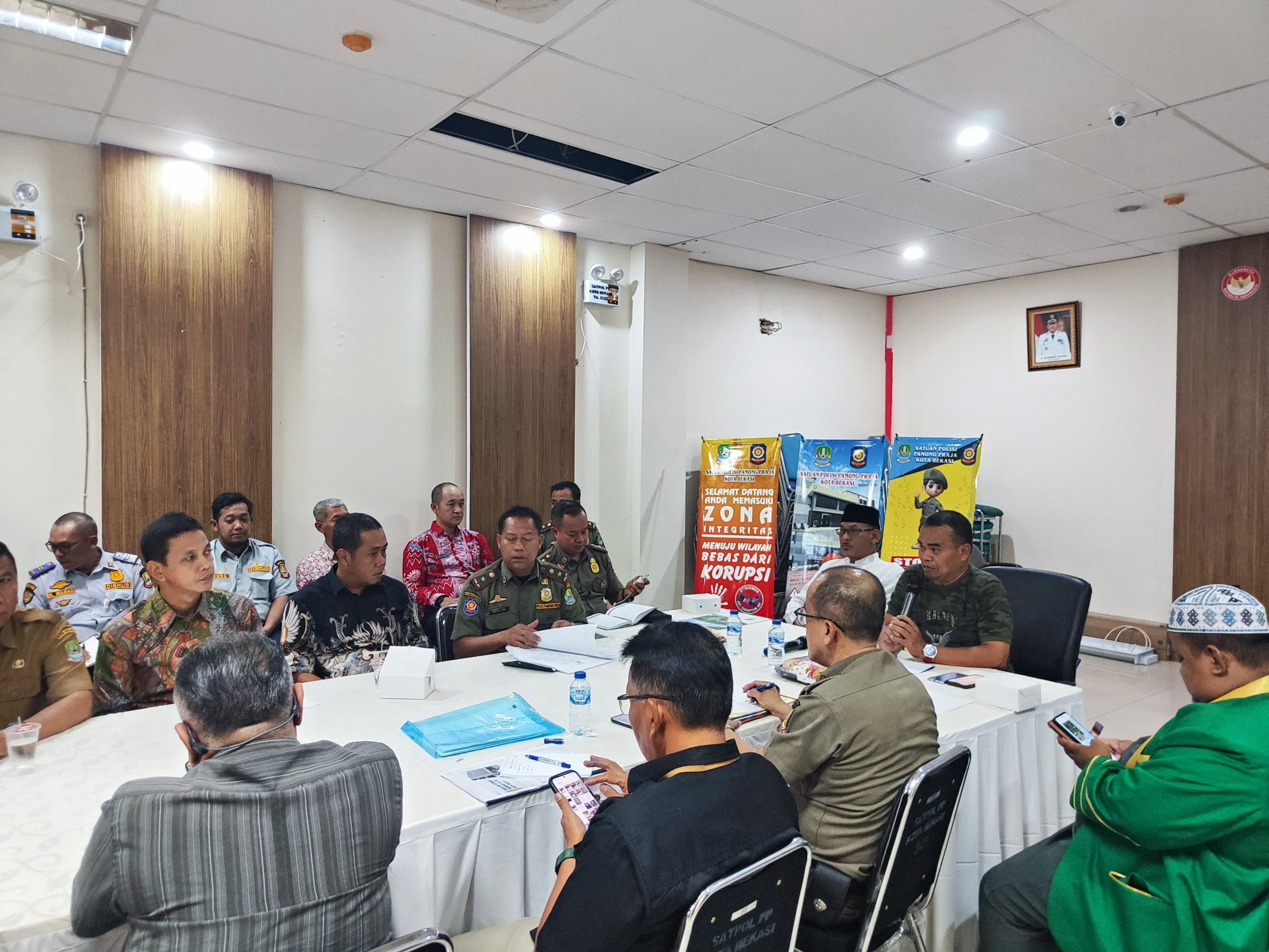 Hadir dalam forum tersebut Kasat Pol PP Kota Bekasi Nesan Sujana, S.T., M.T., CGCAE, bersama para pemangku jabatan lingkup Satpol PP Kota Bekasi serta dari unsur Kejaksaan Negeri Kota Bekasi, Kodim 0507, Polres Metro Bekasi Kota, MUI, Badan Penanggulangan HIV/AIDS, Dinas Kesehatan, Dinas Perhubungan, Disdukcapil, Kesbangpol dan 12 Kasi Trantib Kecamatan se-Kota Bekasi.