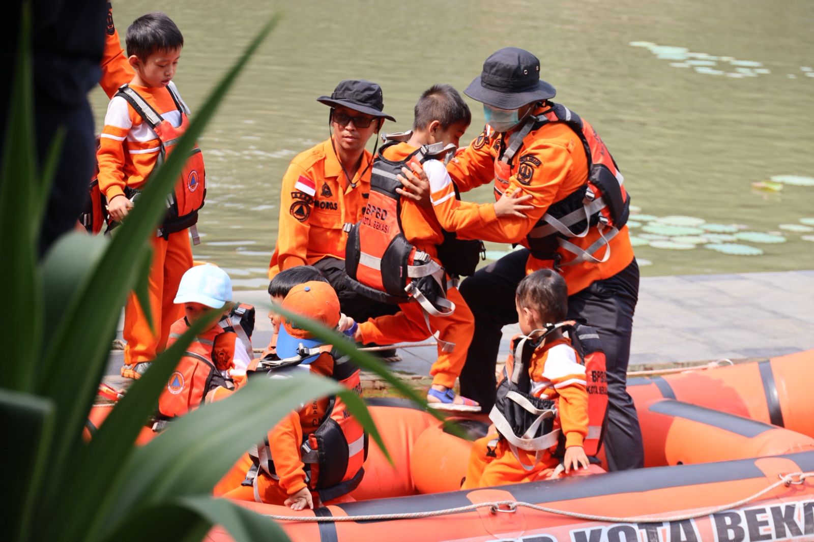 Kegiatan tersebut diikuti oleh anak-anak dari TK Cahaya Hati, Kelurahan Perwira, Kecamatan Bekasi Utara. Mereka tampak antusias mengikuti simulasi kesiapsiagaan bencana dan permainan edukatif di area parkiran Kantor Pemerintah Kota Bekasi, termasuk mencoba boating atau naik perahu di danau kecil sekitar area tersebut.