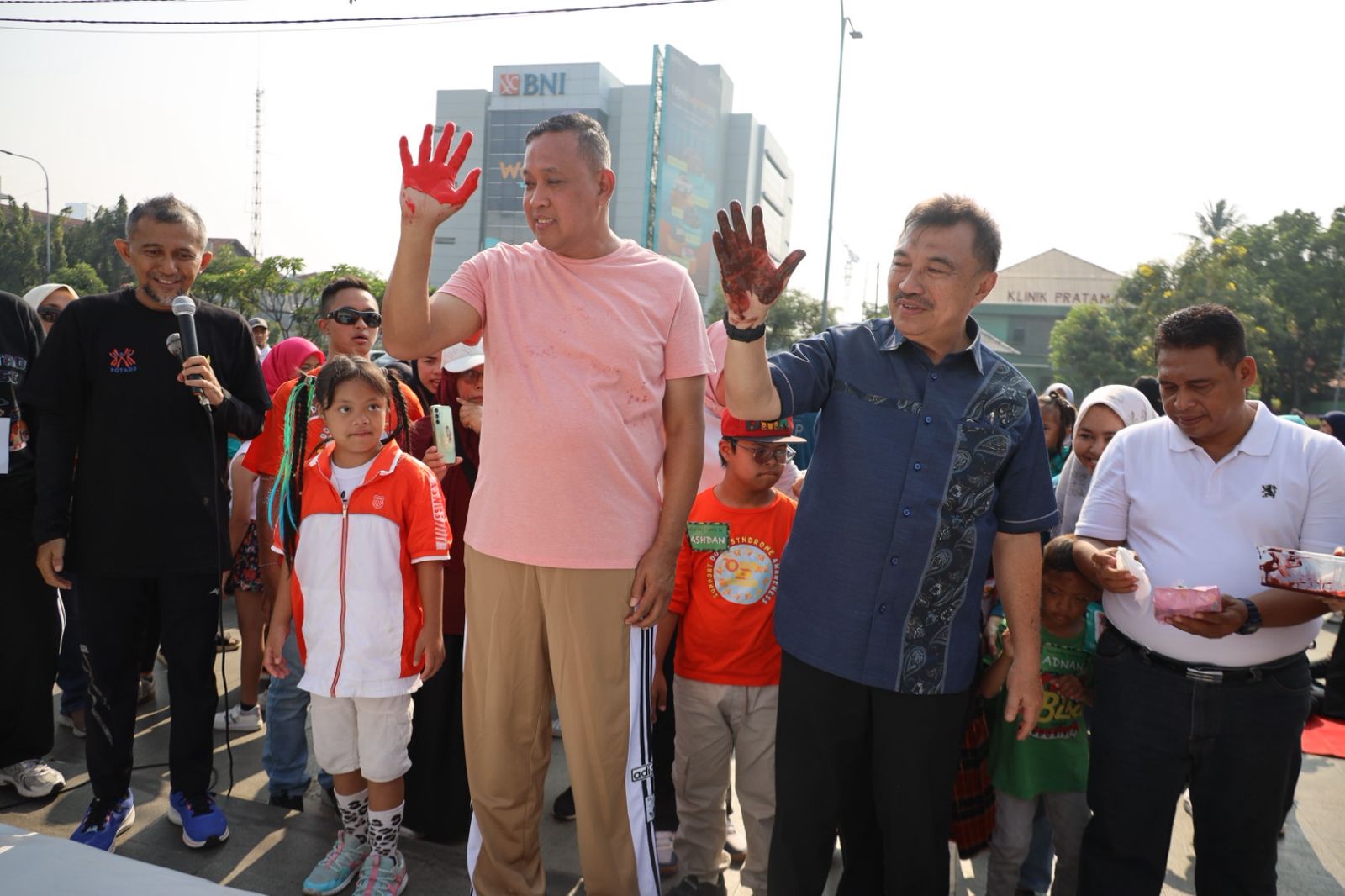 Suasana Car Free Day (CFD) di area Plaza Patriot Candrabhaga, Minggu, (05/10) berlangsung penuh warna dan kehangatan. Wali Kota Bekasi, Tri Adhianto bersama Wakil Wali Kota Bekasi, Abdul Harris Bobihoe turun langsung menyapa dan memberi semangat kepada anak-anak penyandang Down Syndrome, bahkan ikut bernyanyi bersama mereka sebagai bentuk dukungan dan motivasi.